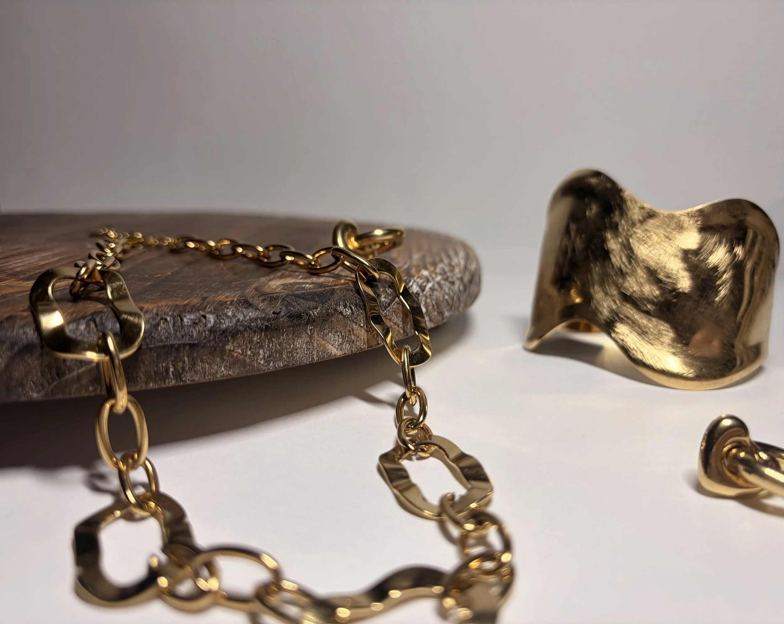 Nous proposons des bijoux modernes en acier inoxydable dorés et argentés, en mettant l'accent sur des designs intemporels, une production locale et des matériaux issus de sources responsables.